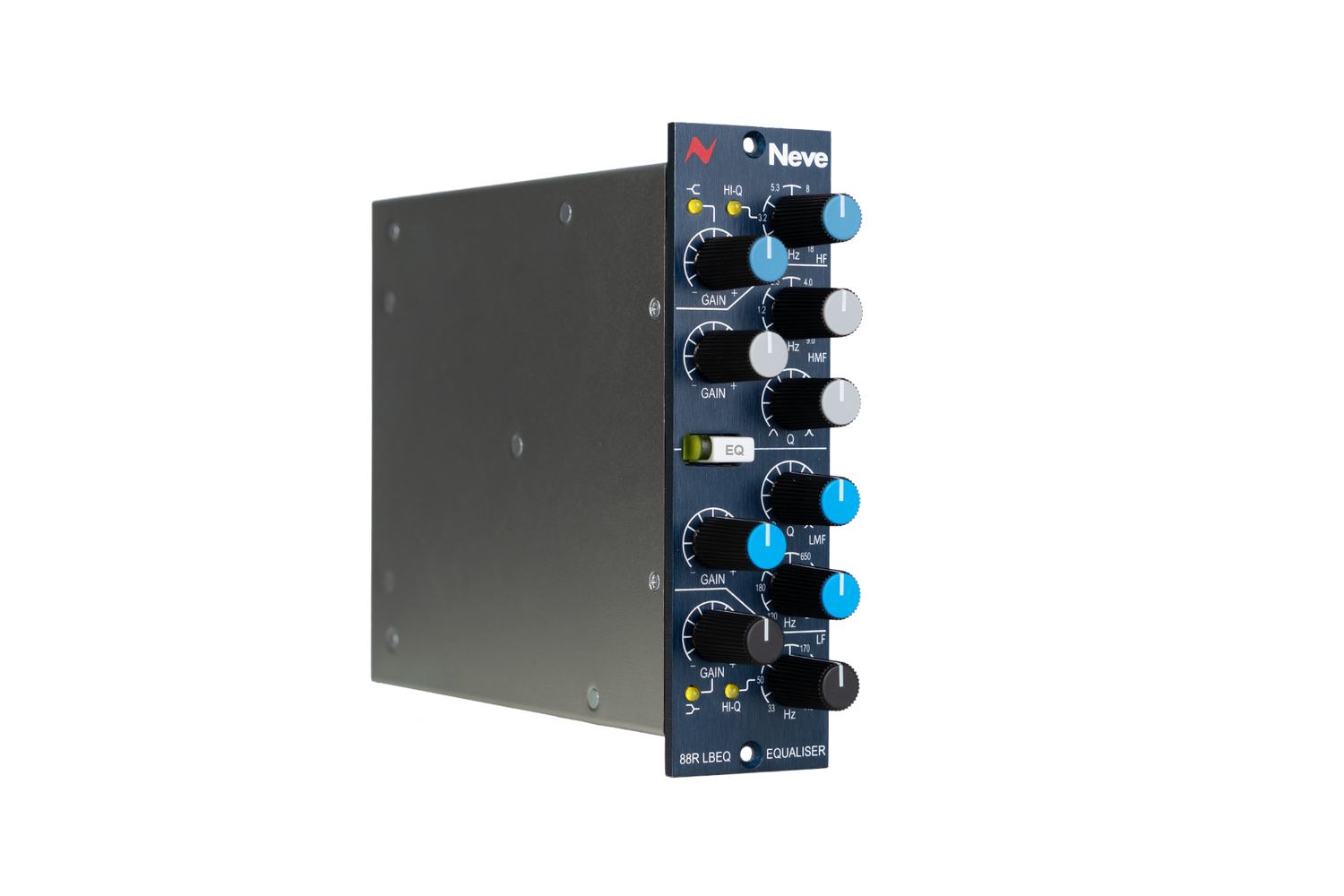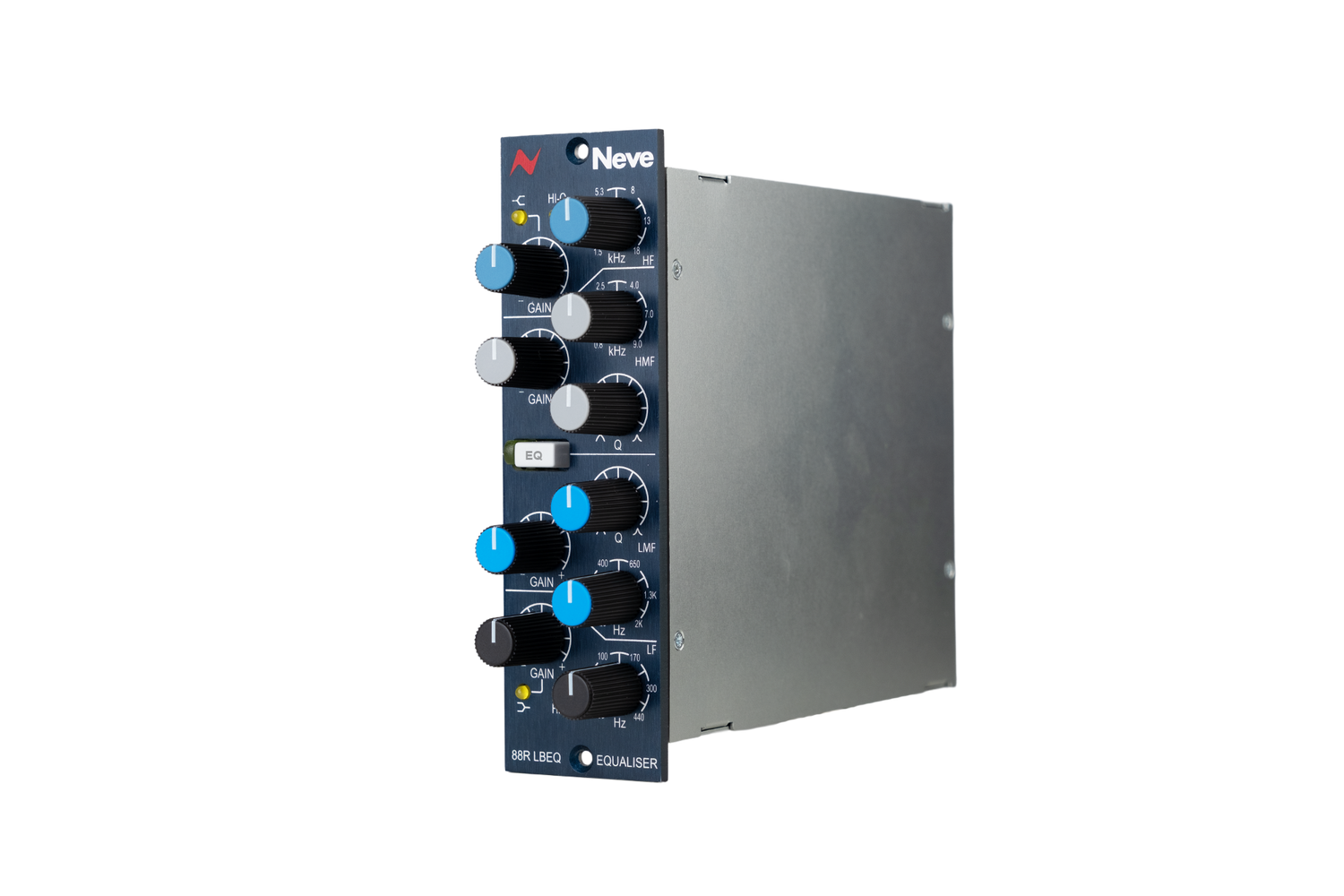 This fully parametric EQ includes four independent bands, each with ±20 dB of gain, overlapping frequency ranges, and variable Q. From shaping low-end impact to refining high-frequency detail, the 88R LBEQ provides accurate and musical tone shaping. Switchable bell and shelf modes, including resonant shelving, allow for detailed adjustments across the spectrum. The true bypass feature supports easy comparison of processed and unprocessed signals. The 88R LBEQ functions effectively on its own or as part of a modular Neve signal chain with matching preamp and compressor modules.