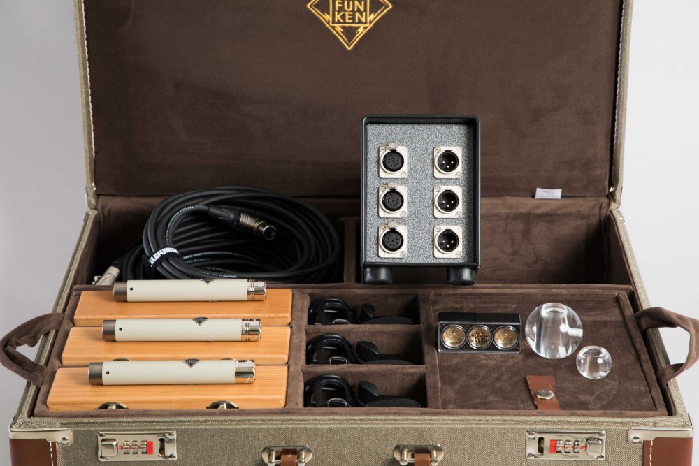 The TELEFUNKEN Elektroakustik TRI-MONO package for the ELA M 260 system consists of three ELA M 260 microphones [finished in black], a 3-channel power supply capable of powering all three microphones, three elastic shock mounts, and a set of three 10-meter AccuSound TX-7 tube mic cables with right angle XLR connectors. In order to foster an element of creativity, all three capsule systems [TK60 cardioid, TK61 omni-directional, and TK62 hyper-cardioid] are included in the package, along with a set of three 50mm and a set of three 30mm diffuse field spheres.