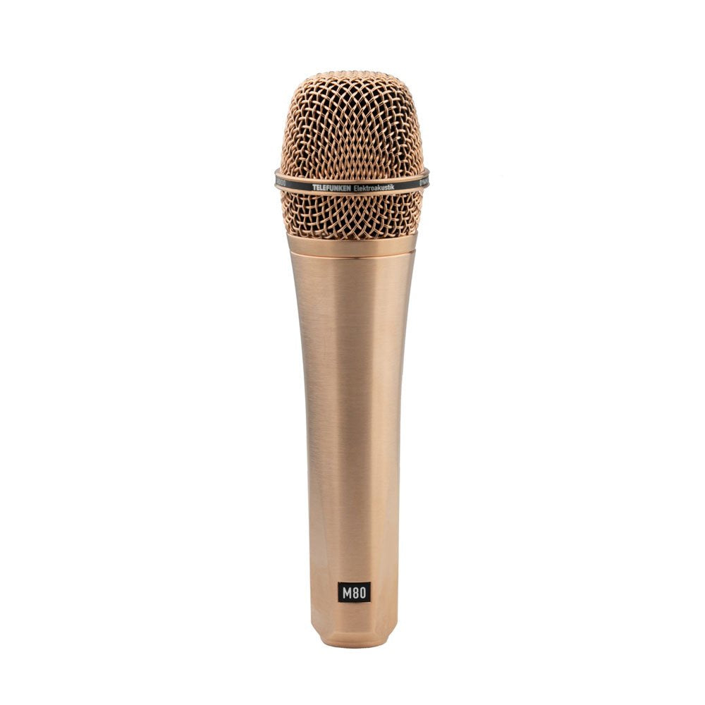 The Telefunken M80 is a high-performance dynamic microphone that has become a go-to choice for both live sound and studio recording. Featuring a condenser-like extended high-end response and the ability to handle high SPLs, the M80 captures sound sources with remarkable clarity and detail. Its supercardioid polar pattern provides excellent off-axis rejection, making it ideal for lead vocals, snare drums, and other instruments that require precise sound isolation. The microphone's custom-wound impedance-matching transformer and intelligent internal construction minimize handling noise, ensuring a clean and reliable performance in any environment.