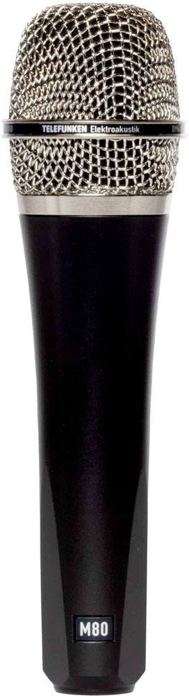 Over the last decade the TELEFUNKEN M80 has become a staple in live sound reinforcement and studio recording. Its wide frequency response, condenser-like performance, and high SPL capabilities allow the M80 to capture the full range of any sound source, making it a reliable first choice for many sources including lead vocals and snare drum. Its unmatched performance is mated with intelligent internal construction to provide low handling noise. Hand-assembled in the USA, the M80's rugged build quality is designed to withstand the wear and tear of the road.