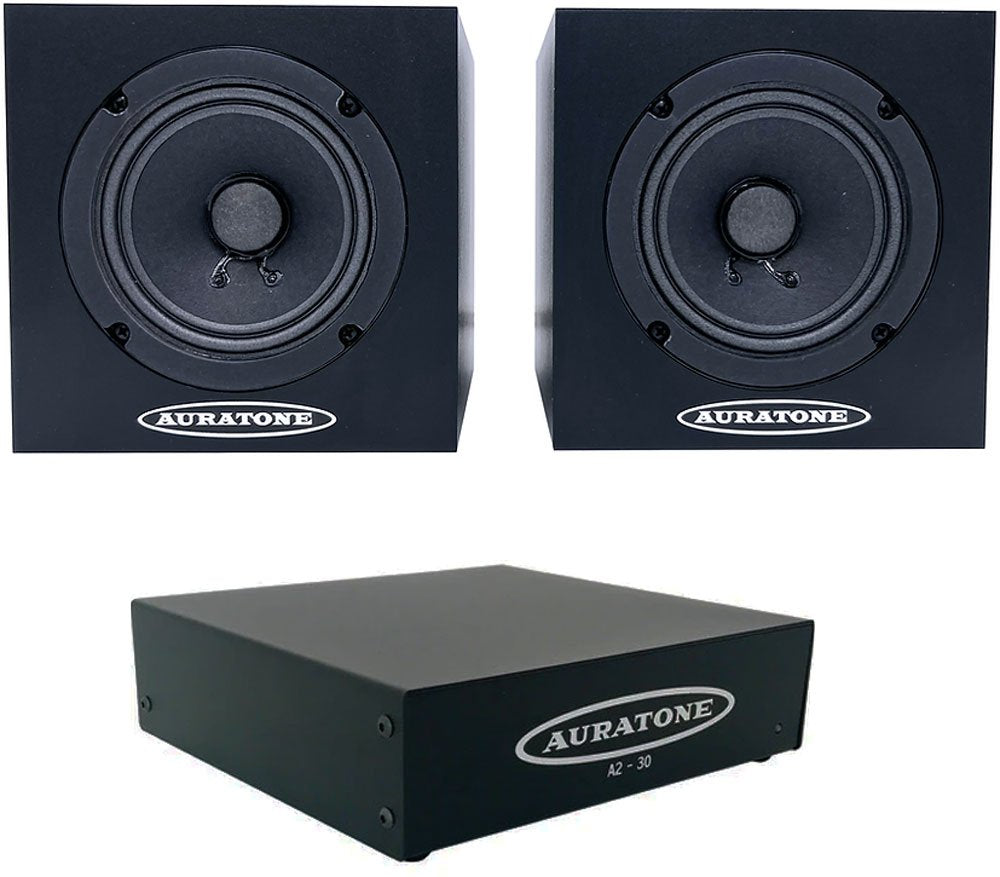 The studio classic Auratone 5C Super Sound Cube and new A2-30 Amplifier are now available in a convenient discounted bundle! The A2-30 is purpose built for the 5C's and outputs 30w per channel at 8ohms with an accurate, neutral sounding circuit. The amp features the same footprint as the 5C which looks great on a meter bridge or desk. The bundle is available with black or woodgrain finish 5C's. The 5C, which became famous in the 1970's and 80's and has been used in virtually every major recording studio worldwide, is still the undisputed industry standard for "real world" referencing in the recording studio.