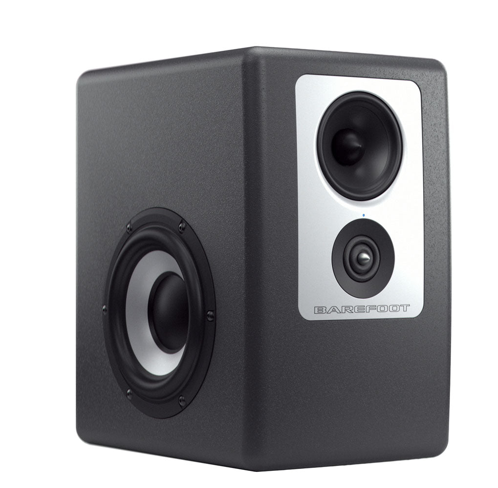 This tri-amplified 3-way monitor houses a 1-inch dual-ring radiator tweeter, a 5-inch aluminum cone midrange, and dual 6.5-inch aluminum woofers—each powered by dedicated Class D amplification (60W tweeter / 200W mid / 200W bass). The result is wide and smooth frequency response from 38 Hz to 42 kHz, minimal distortion, and crystal-clear detail at every level. At the core of its performance is SPOC™ (Spectrally Optimized Conversion), Barefoot's patented hybrid analog-digital crossover system that boosts signal-to-noise ratio by 15 dB and preserves transient accuracy, delivering low-latency, high-resolution monitoring ideal for mixing, mastering, and immersive workflows.