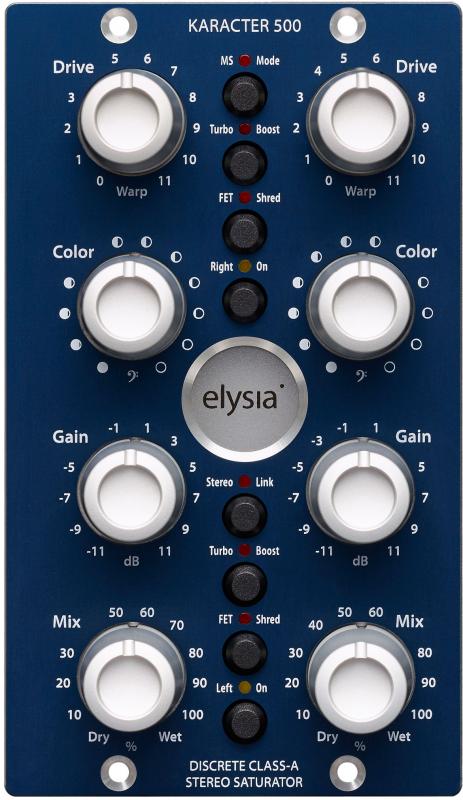 The karacter 500 is a box full of vibrant colors. It covers a complete spectrum including mastering-grade saturation, tube-inspired distortion and glorious destruction. Gone are the days when only racks full of outboard gear could achieve these elusive and highly desirable styles of tonal coloration... This all-in-one solution offers two separate channels which can be set up for dual mono, linked stereo or linked and unlinked M/S operation. Integrated mix stages for parallel signal processing and the unique Color Control add to its remarkable flexibility. The entire unit is designed with discrete class-A topology, so even the most lo-fi sounds will benefit from the karacter's high-end touch. Enhance your tracks or decimate eve- rything - It's a matter of karacter.
