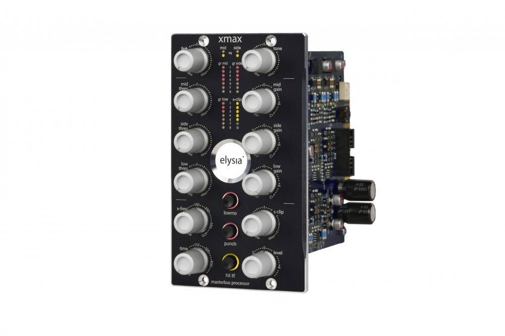 The elysia xmax is a 500 sereisclass-A stereo masterbus processor designed for high-end mixing and mastering. It features a multiband compressor with low-, mid-, and side-band processing, offering detailed control over dynamics. A soft clipper, derived from the alpha compressor, allows you to push your signal without unwanted digital clipping, making it an excellent tool for both studio and live applications.
