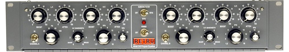 Vintage Tube Amplifiers and Custom-Designed Transformers set the soundstage. True Passive Equalization creates Bountiful and Musical Equalization curves. The new RETRO 2A3 is designed as an ultra High-Fidelity Program Equalizer whose sonic benefits go beyond the equalization process. Accurate to the industry-standard Pultec EQ performance, the RETRO 2A3 adds HF boost frequencies in several new sweet spots. Carefully implemented HF boost circuits capture the signature sound of the original passive equalizers. Use these settings to make individual tracks fit in place. Make a vocal shine and add distinct presence. There are many satisfying applications, most notably the stereo mix buss.