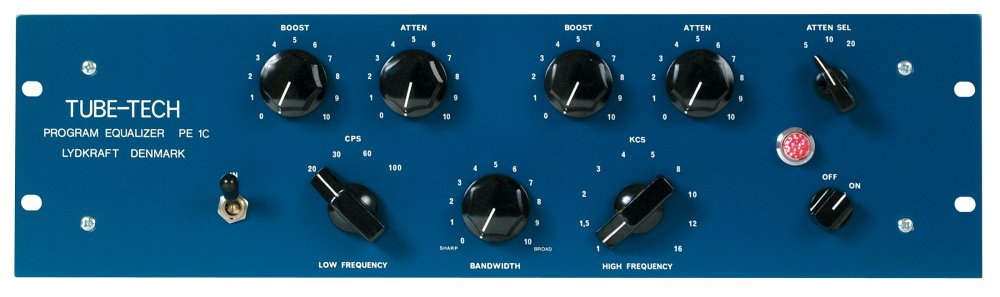 With the original Pultec out of production for decades and used examples demanding sky-high prices, the PE 1C is by far the easiest way to achieve this unique and coveted sound. The PE 1C is a passive, all-tube EQ, based on the classic PULTEC EQP 1A design and featuring a passive EQ section and a high quality op amp. With the original Pultec out of production for decades and used examples demanding sky-high prices, the PE 1C is by far the easiest way to achieve this unique and coveted sound. The PE 1C low end section combines two separate passive EQ filters with slightly different cut/boost frequencies. When the two sections are combined, this results in truly unique EQ curves, often named the "Low End Trick" and very useful for cleaning up low/mid frequencies. The high frequency and midrange bands really stand out in terms of transparency and clarity, and the PE 1C is broadly regarded as one of the world's finest passive tube based equalizers.