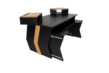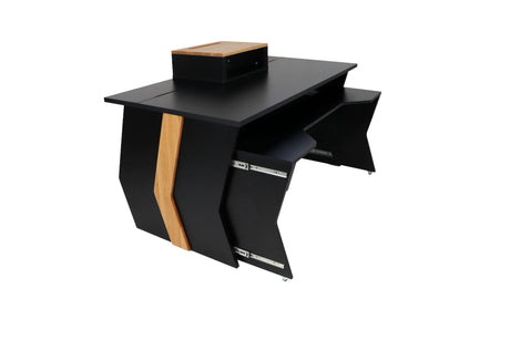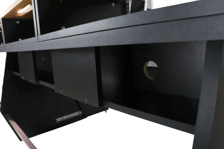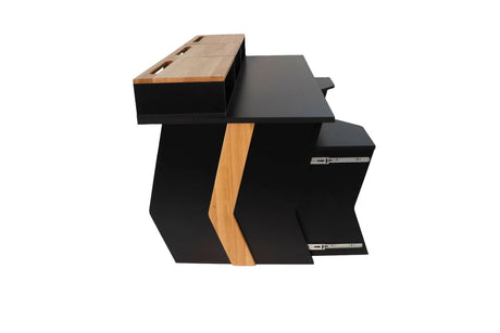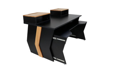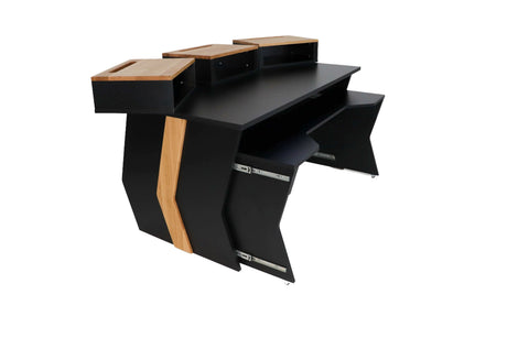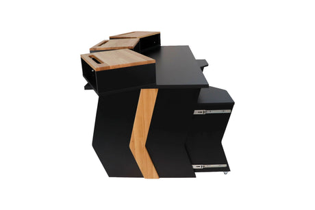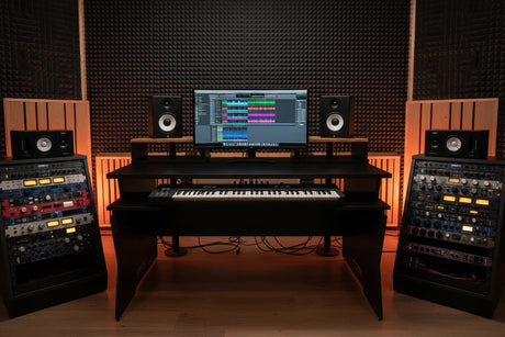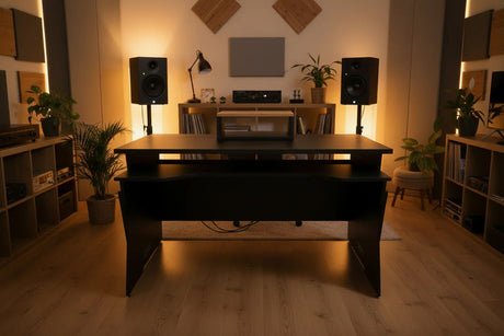 Mobilier sur mesure conçu pour des environnements de studio ergonomiques, efficaces et organisés. Comprend des racks, des postes de travail, des supports d'enceintes et des accessoires.