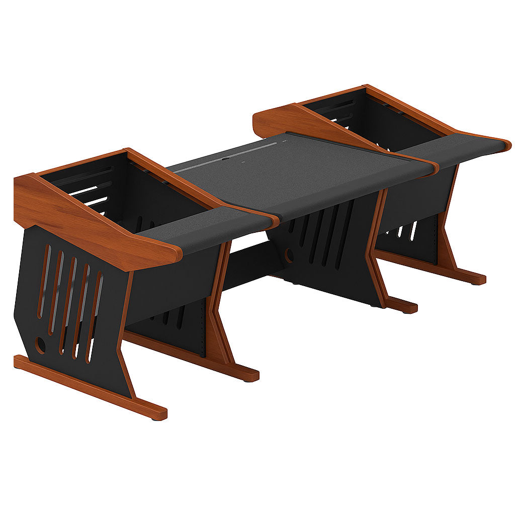 The Zaor Maestro Production Dual Solo Tela 50 – Cherry is a spacious, high-performance workstation that combines refined style with professional functionality. Featuring a warm Cherry wood finish, this configuration brings a touch of natural elegance to your studio while delivering the efficiency and flexibility required for demanding production workflows. It includes two Maestro Solo 12 units paired with the extended 50" Maestro Tela center bridge, offering an expanded workspace ideal for multi-monitor setups, control surfaces, or extended gear layouts.